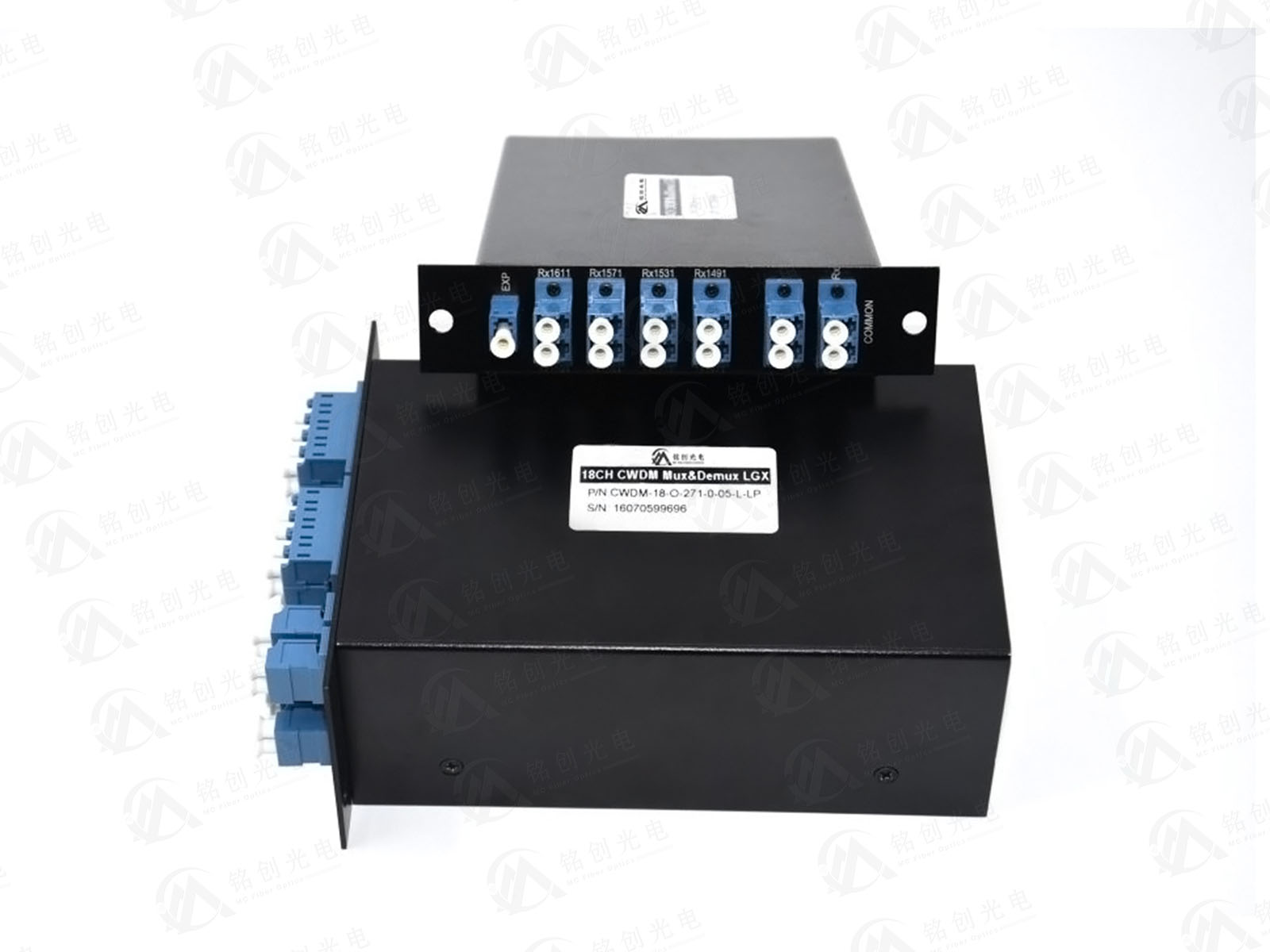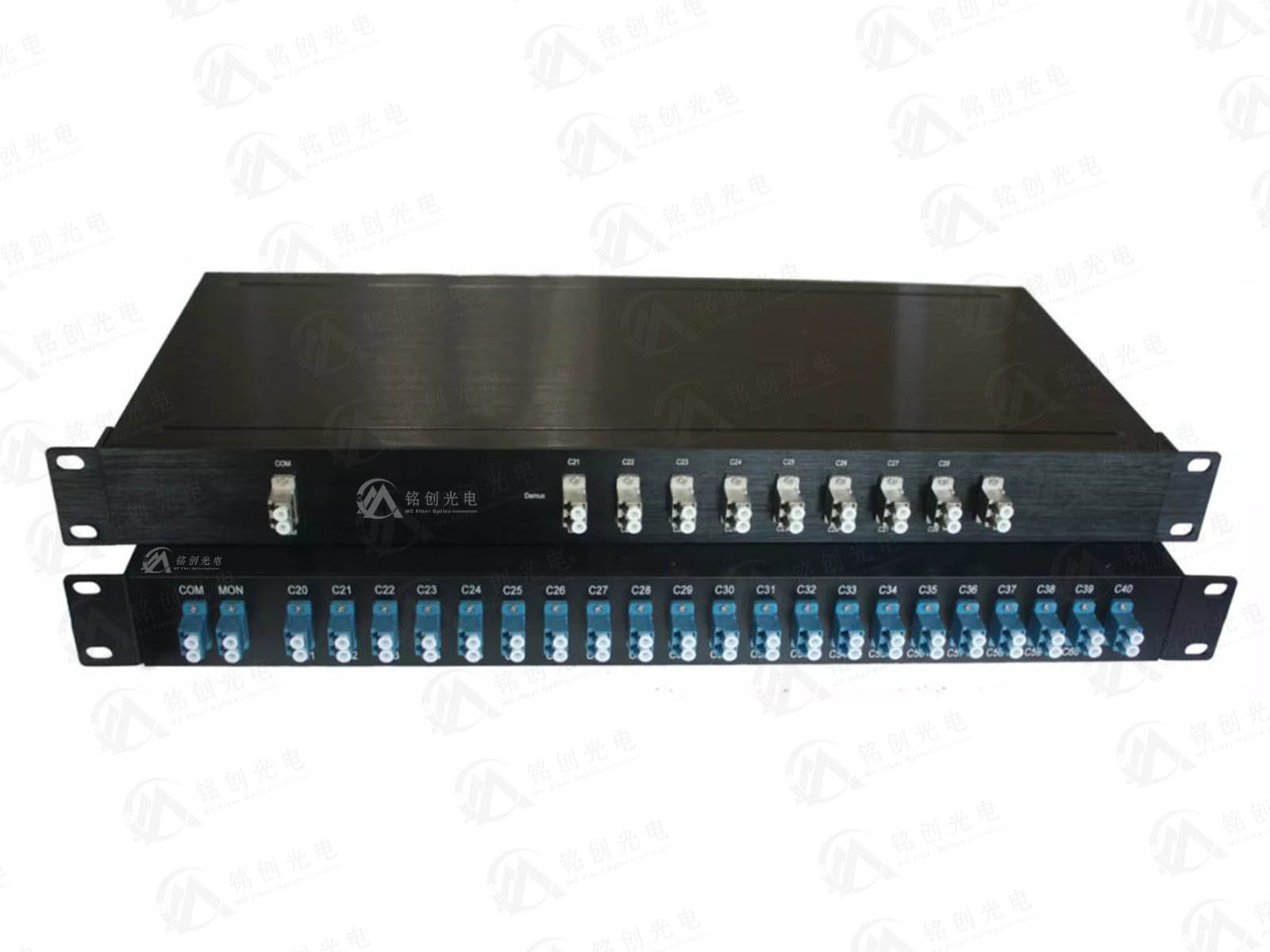 密集波分复用器是将不同波长的光信号复用至一根光纤上(复用),或将复用在一根光纤中的多个光信道按波长分开(解复用)。100G信道间隔密集光波分复用器/解复用器采用成熟的窄带介质膜实现光的滤波,波长稳定性好,采用密封工艺封装,环境稳定性高。 铭创光电可以提供ITU标准的100G通道间隔的波分复用器以及不同封装的模块。
