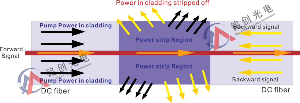 在高功率光纤激光器和光纤放大器中,泵浦光与信号光在掺杂光纤中经过能量交换,泵浦减弱,信号增强,泵浦能量无法全部被吸收,总会有所残留,并在双包层光纤的外包层中传输(如793nm,808nm,915nm, 940nm, 976nm等),这部分能量往往是不需要的,而且可能对后续器件造成伤害,用CPS可以有效“剥除”包层内的残余泵浦甚至是内包层返回的反射信号光,而在纤芯中传输的信号光能够被很好的保持,包括信号光功率和光束质量因子(M2)。